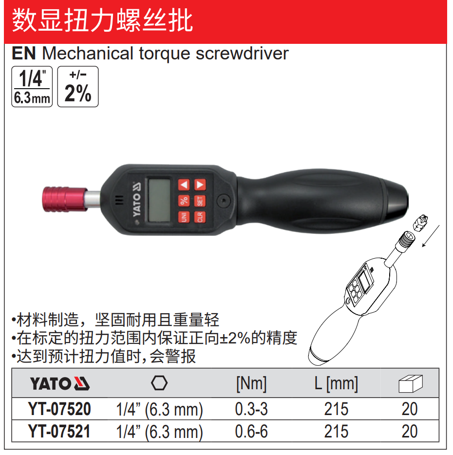 YATO 扭矩测量螺丝刀0.3-6N.m