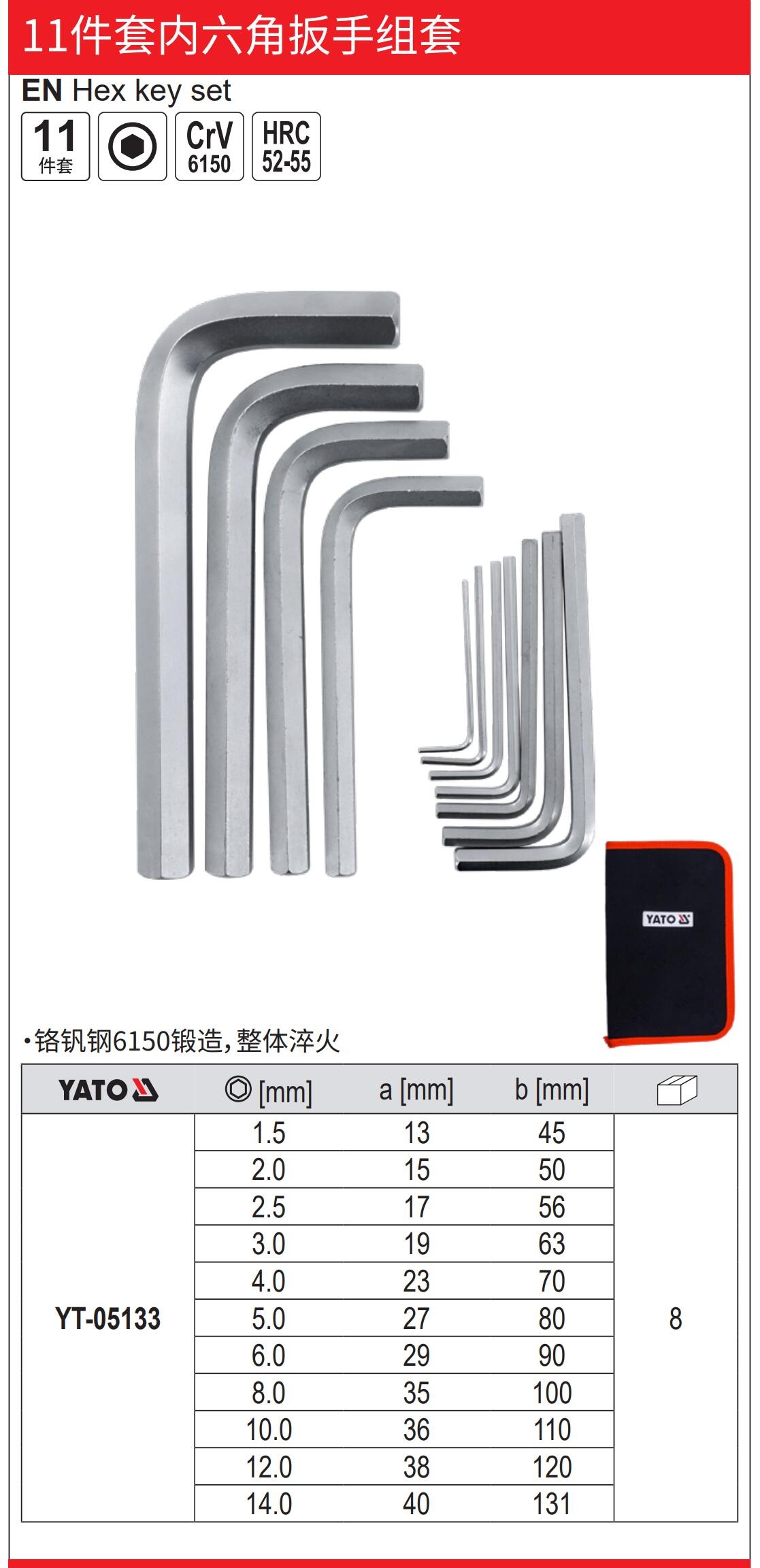 YATO11件套平头内六角扳手CrV1.5-14mm