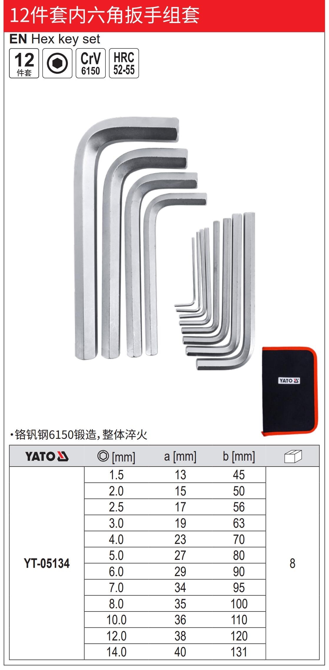 YATO12件套平头内六角扳手CrV1.5-14mm