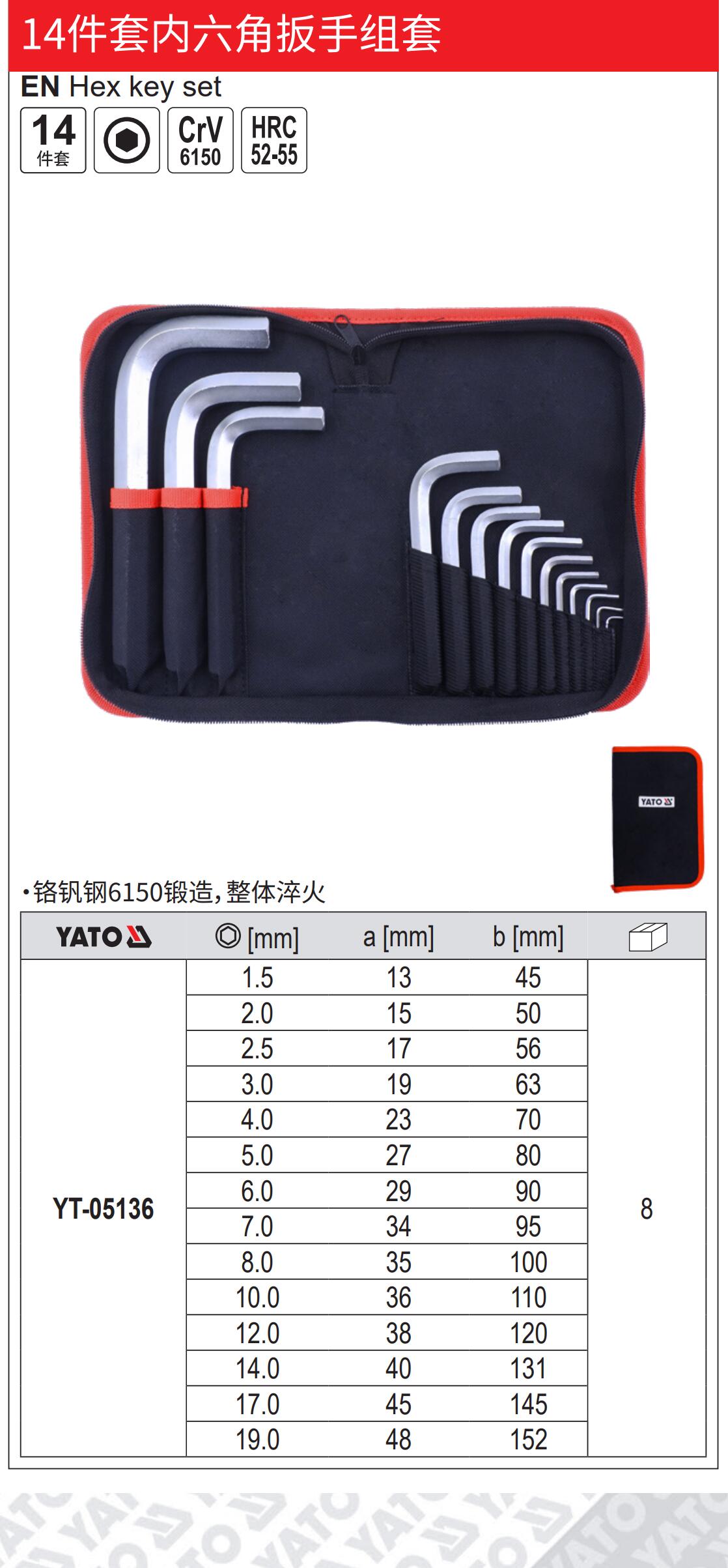 YATO14件套平头内六角扳手CrV1.5-19mm