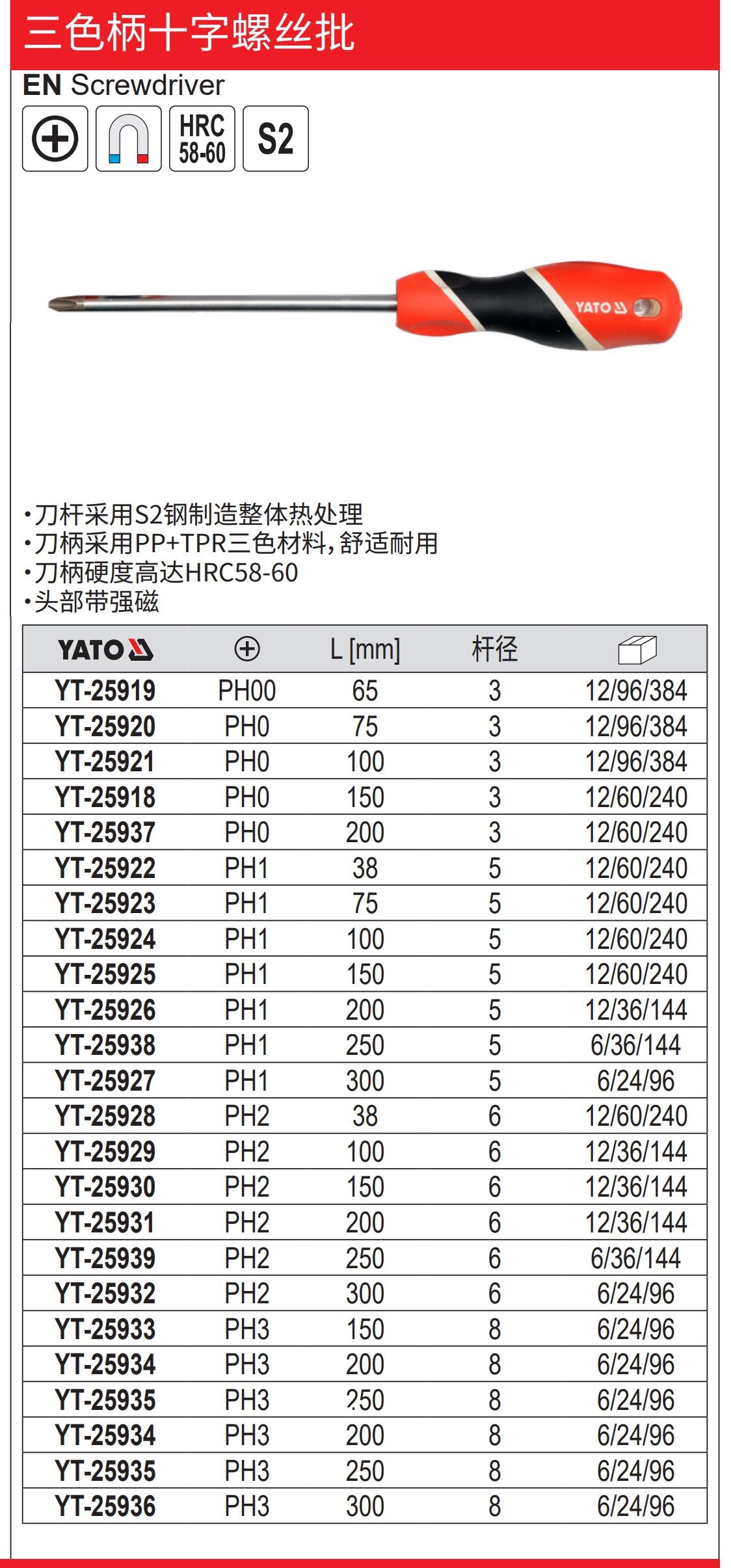 YATO 三色柄十字螺丝批S2
