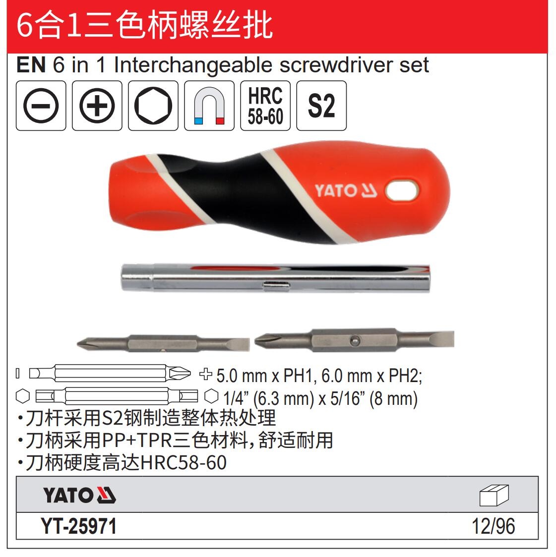 YATO 6合1三色柄螺丝批S2