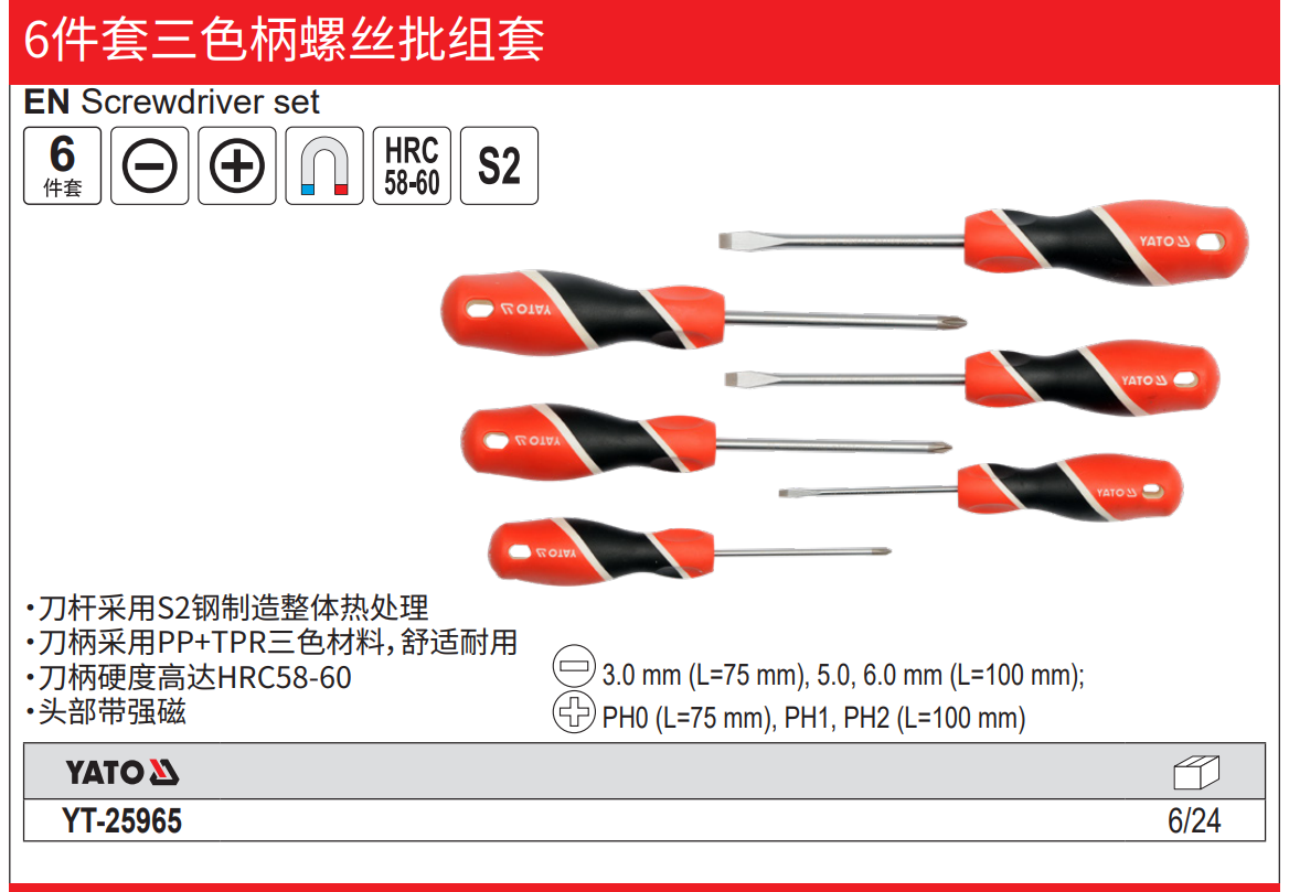 YATO 6件套三色柄螺丝批S2