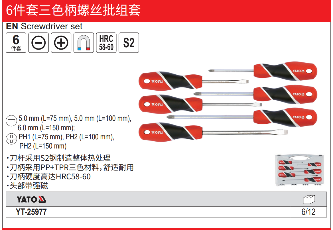 YATO 6件套三色柄螺丝批S2