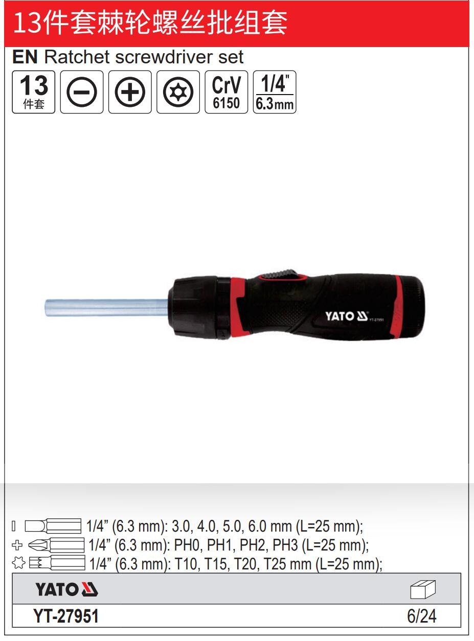 YATO 13件套棘轮螺丝批