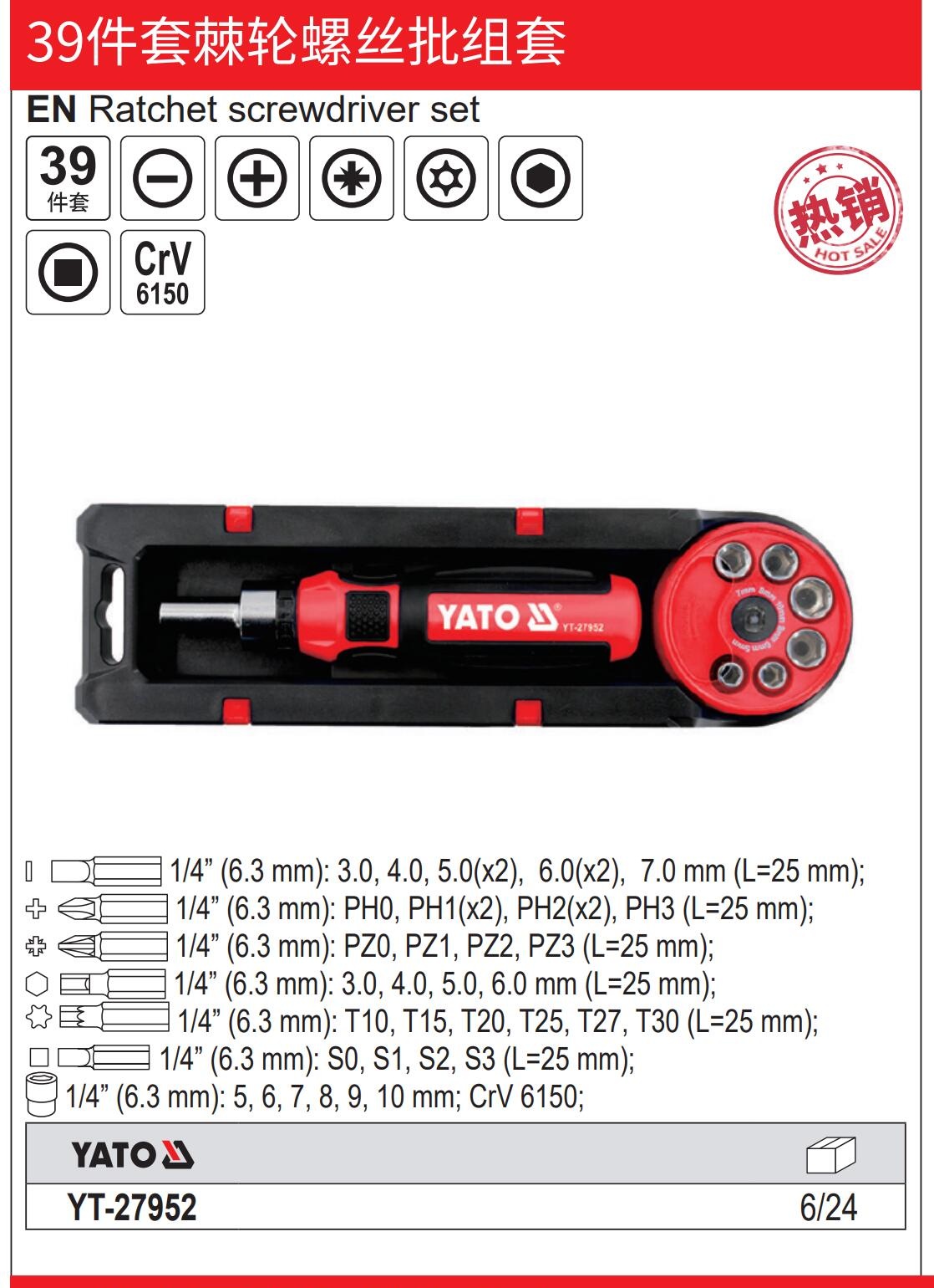 YATO 39件套棘轮螺丝批
