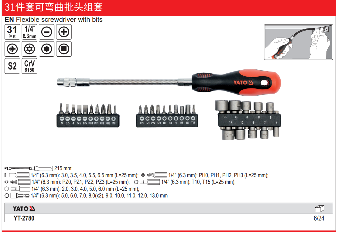 YATO 31件套可弯曲批头