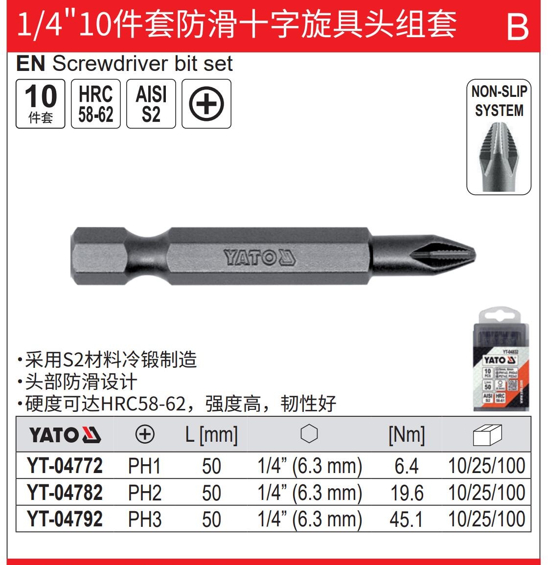 YATO 1/4 10件套防滑十字旋具头PH1-PH3