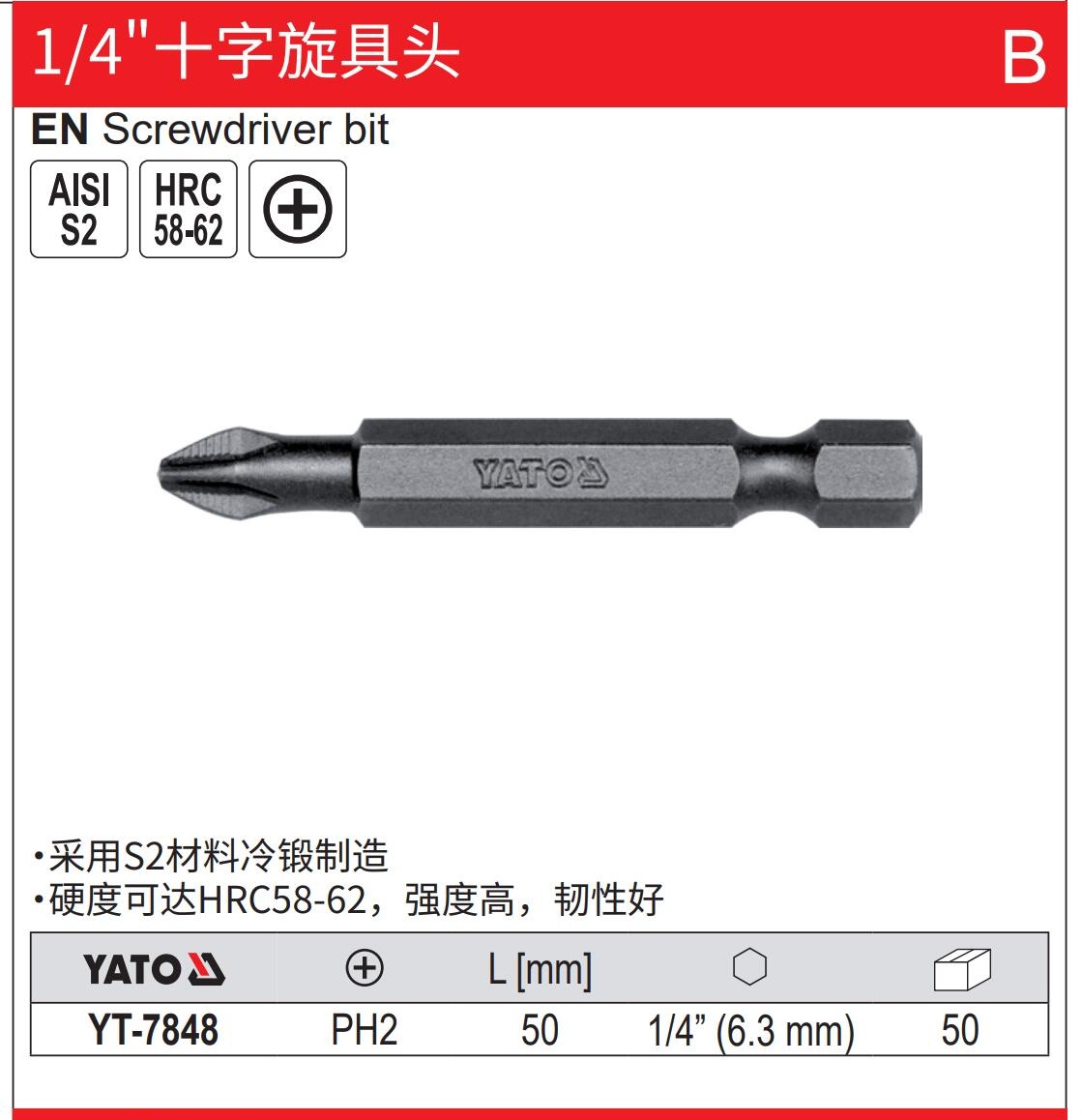 YATO 1/4十字旋具头PH2