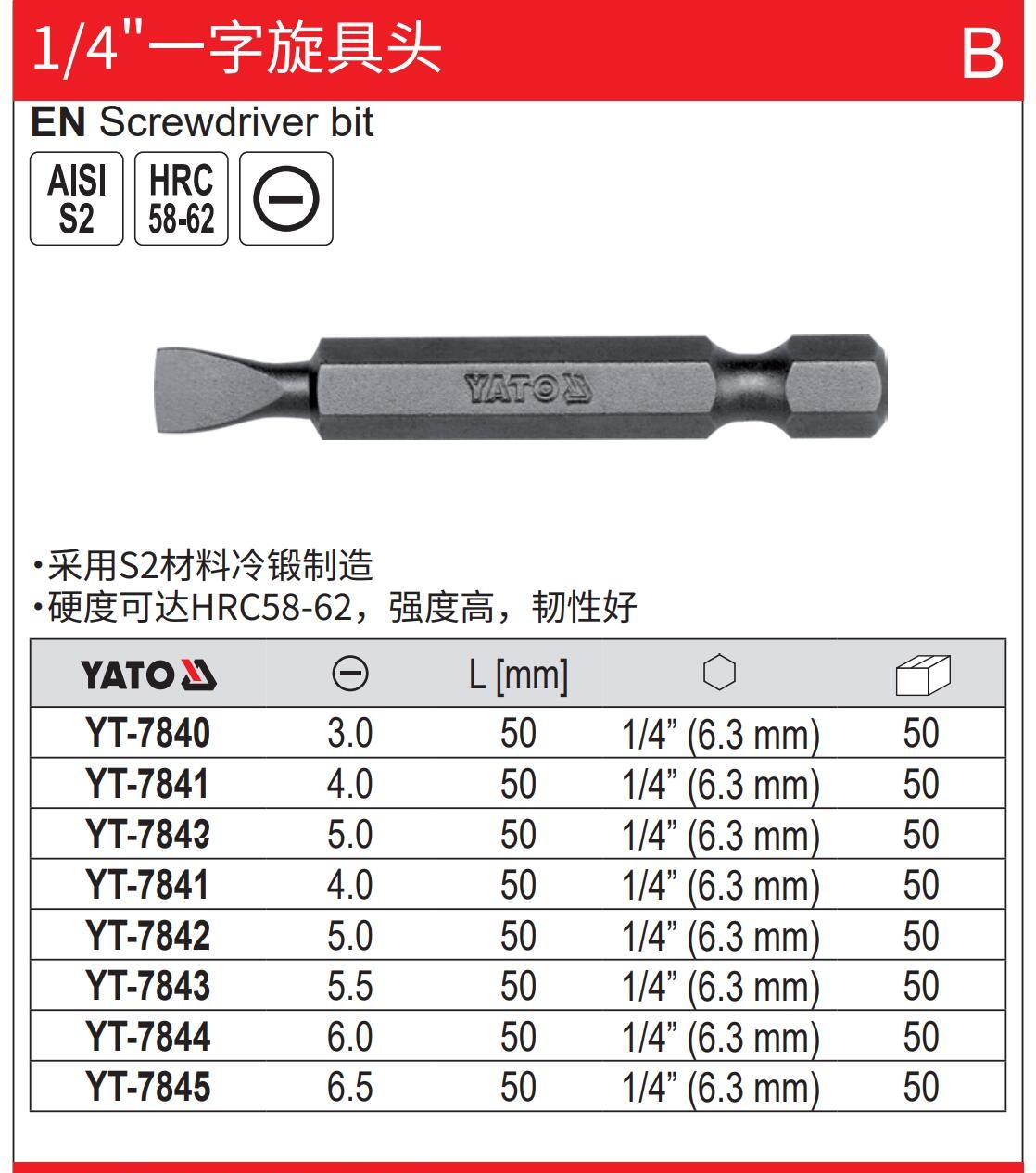 YATO 1/4一字旋具头 3-6.5mm