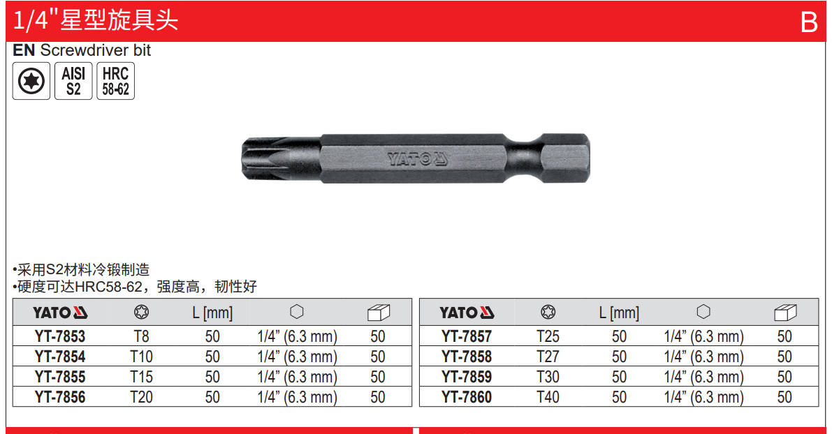 YATO 1/4星型旋具头