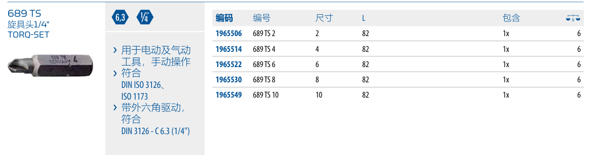 Gedore 1/4TORQ-SET十字旋具头长82mm