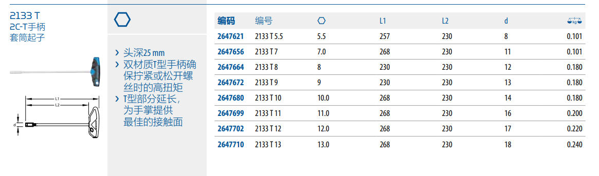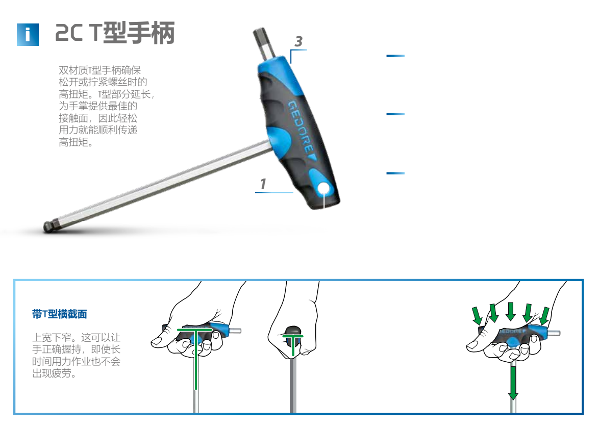 › 双材质T型手柄确保拧紧或松开螺丝时的高扭矩