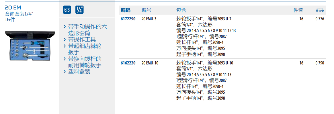 Gedore 1/4 套筒套装16件套