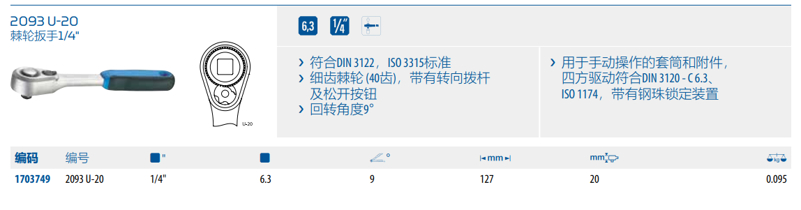 › 细齿棘轮 (40齿),带有转向拨杆及松开按钮