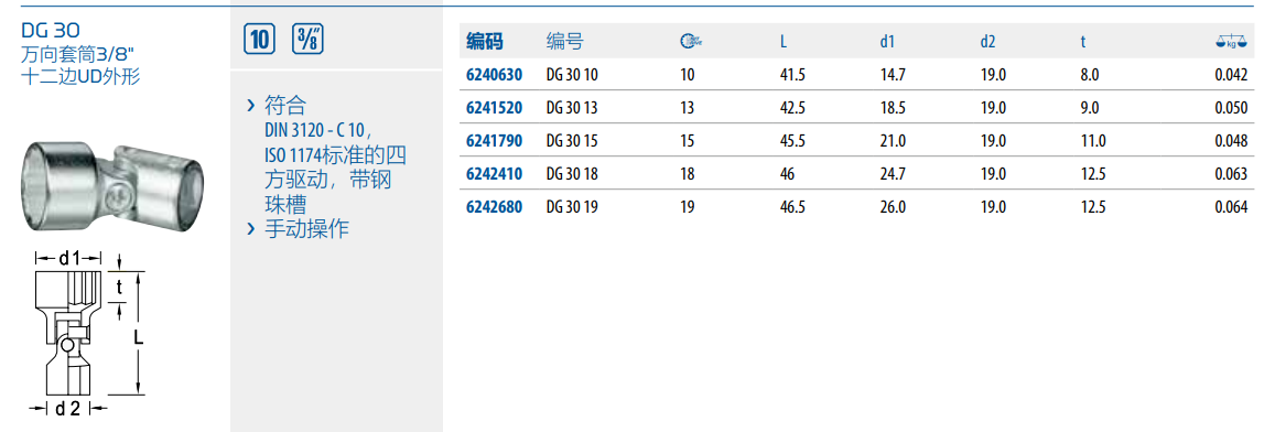 › 符合DIN 3120 - C 10,ISO 1174标准的四方驱动,带钢珠槽