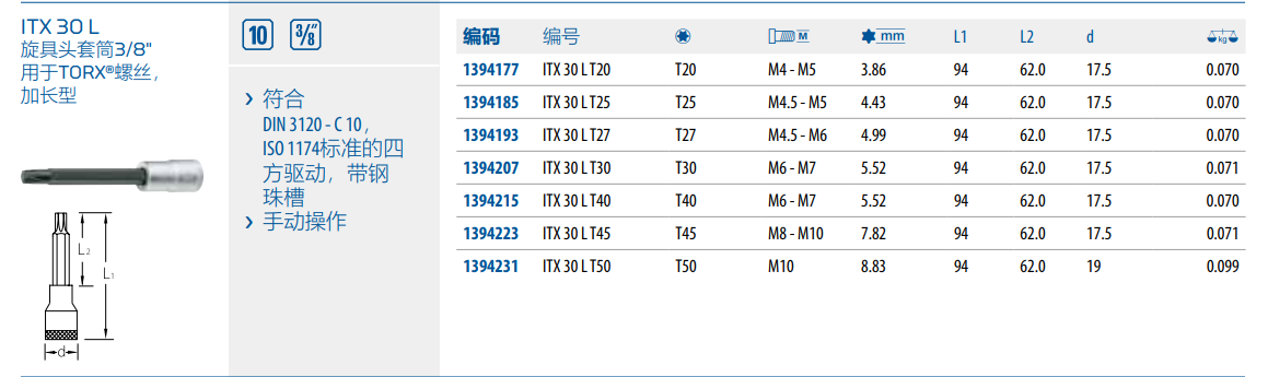 › 符合DIN 3120 - C 10,ISO 1174标准的四方驱动,带钢珠槽