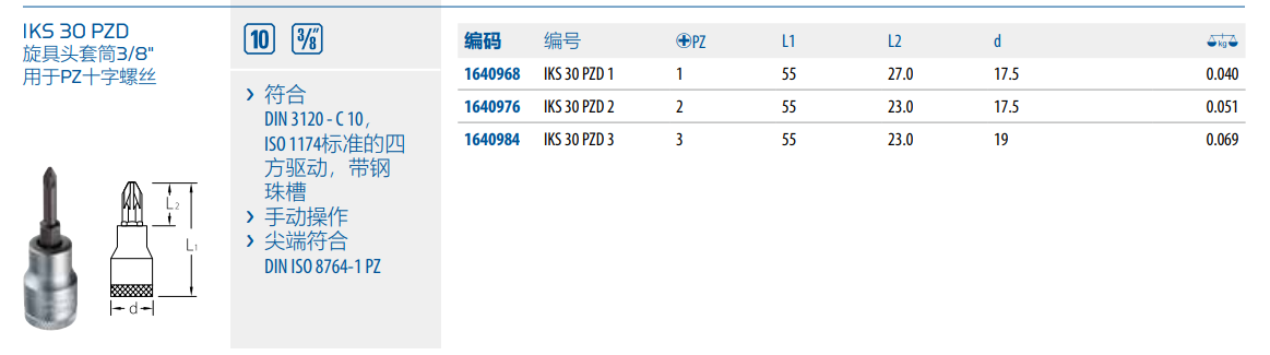 › 符合DIN 3120 - C 10,ISO 1174标准的四方驱动,带钢珠槽