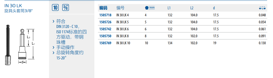 › 符合DIN 3120 - C 10,ISO 1174标准的四方驱动,带钢珠槽
