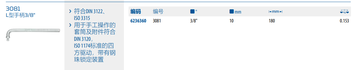 › 用于手工操作的套筒及附件符合DIN 3120,ISO 1174标准的四方驱动,带有钢珠锁定装置