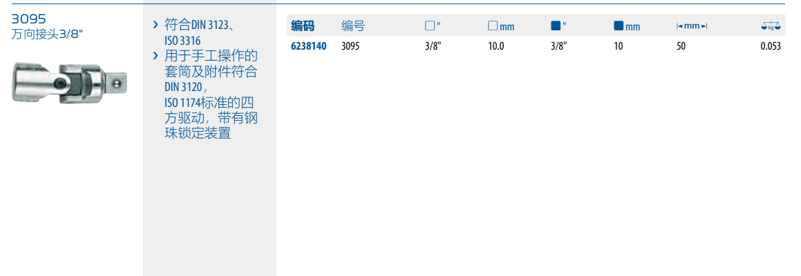 › 用于手工操作的套筒及附件符合DIN 3120,ISO 1174标准的四方驱动,带有钢珠锁定装置