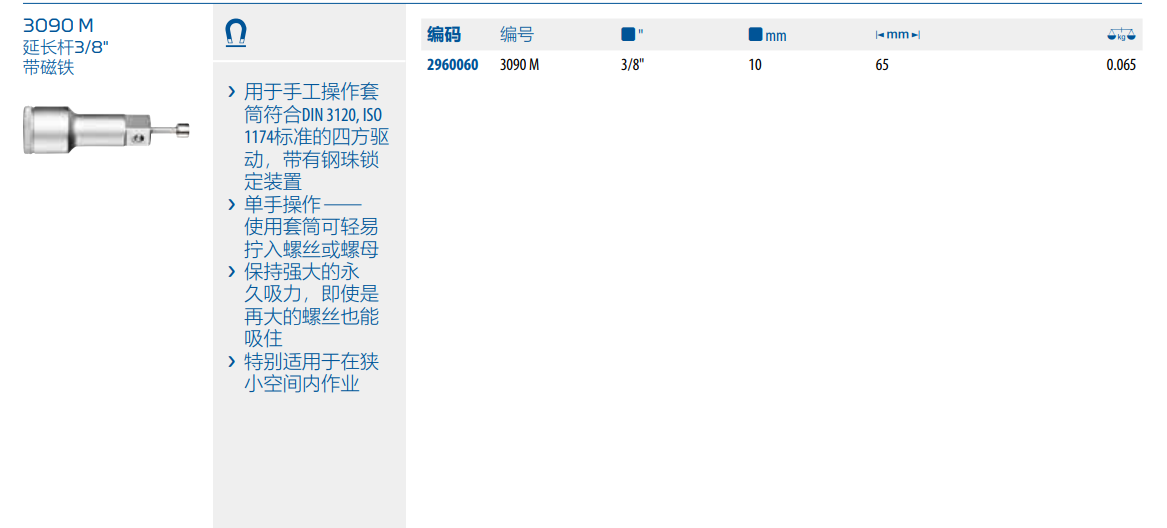 › 用于手工操作套筒符合DIN 3120, ISO1174标准的四方驱动,带有钢珠锁定装置