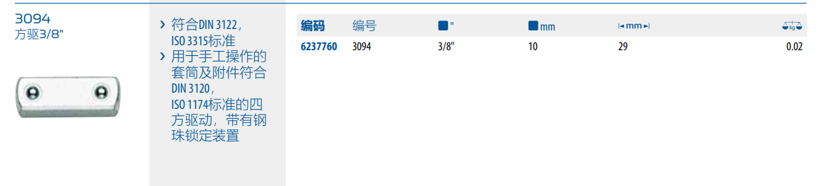 › 用于手工操作的套筒及附件符合DIN 3120,ISO 1174标准的四方驱动,带有钢珠锁定装置