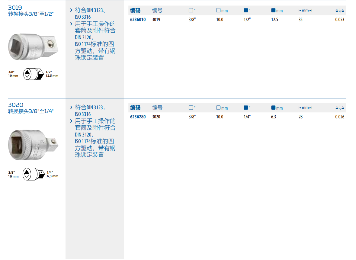 › 用于手工操作的套筒及附件符合DIN 3120,ISO 1174标准的四方驱动,带有钢珠锁定装置