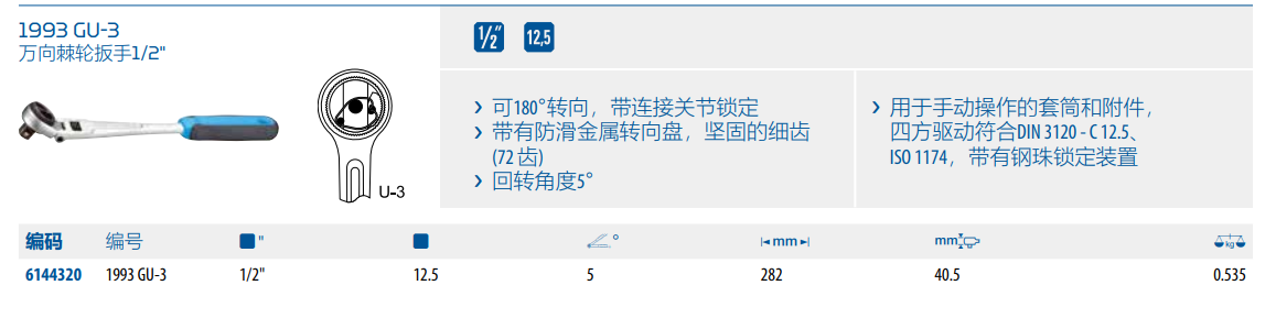 › 用于手动操作的套筒和附件,四方驱动符合DIN 3120 - C 12.5、ISO 1174,带有钢珠锁定装置