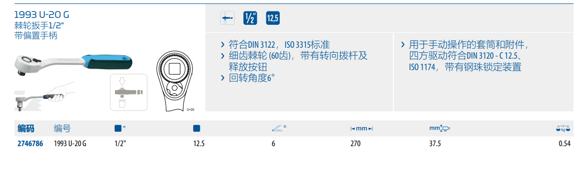 › 细齿棘轮 (60齿),带有转向拨杆及释放按钮