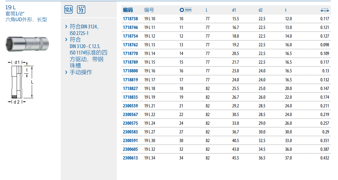 › 符合DIN 3120 - C 12.5ISO 1174标准的四方驱动,带钢珠槽