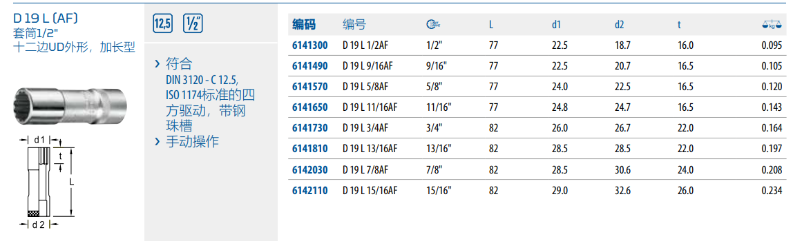 › 符合DIN 3120 - C 12.5ISO 1174标准的四方驱动,带钢珠槽