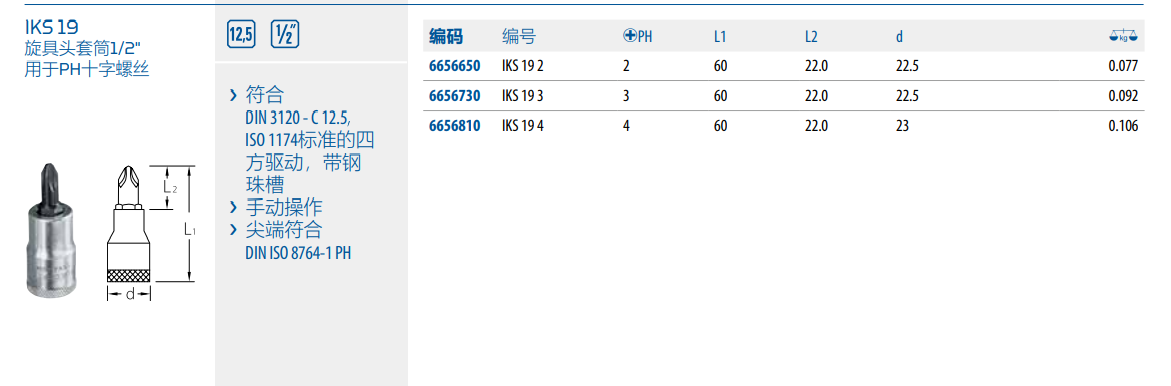 › 符合DIN 3120 - C 12.5ISO 1174标准的四方驱动,带钢珠槽