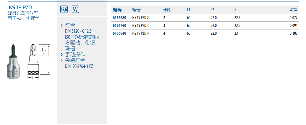 › 符合DIN 3120 - C 12.5ISO 1174标准的四方驱动,带钢珠槽
