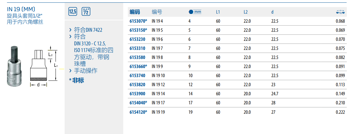 › 符合DIN 3120 - C 12.5ISO 1174标准的四方驱动,带钢珠槽