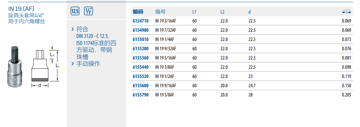 › 符合DIN 3120 - C 12.5ISO 1174标准的四方驱动,带钢珠槽