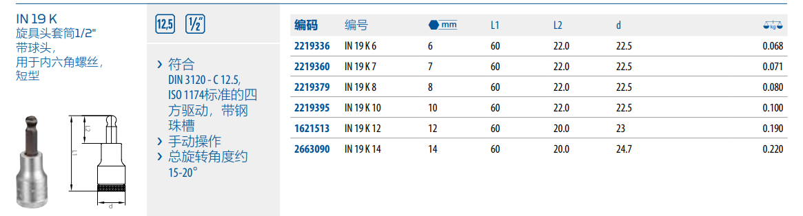 › 符合DIN 3120 - C 12.5ISO 1174标准的四方驱动,带钢珠槽