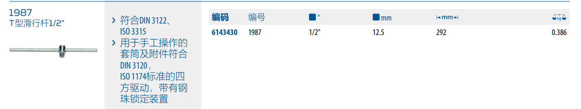 › 用于手工操作的套筒及附件符合DIN 3120,ISO 1174标准的四方驱动,带有钢珠锁定装置