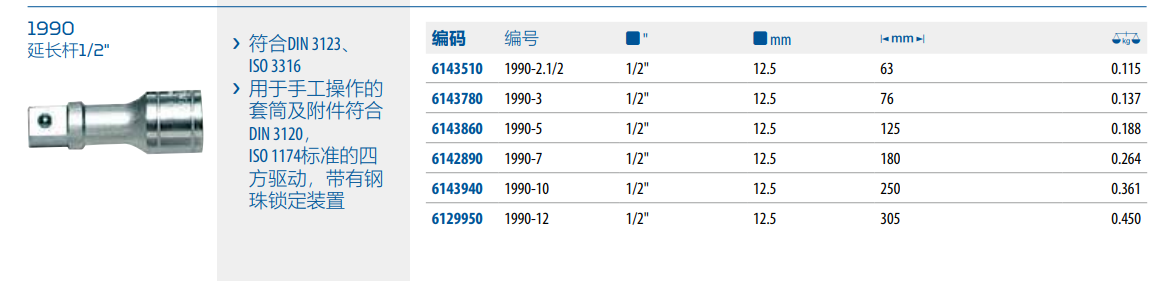› 用于手工操作的套筒及附件符合DIN 3120,ISO 1174标准的四方驱动,带有钢珠锁定装置