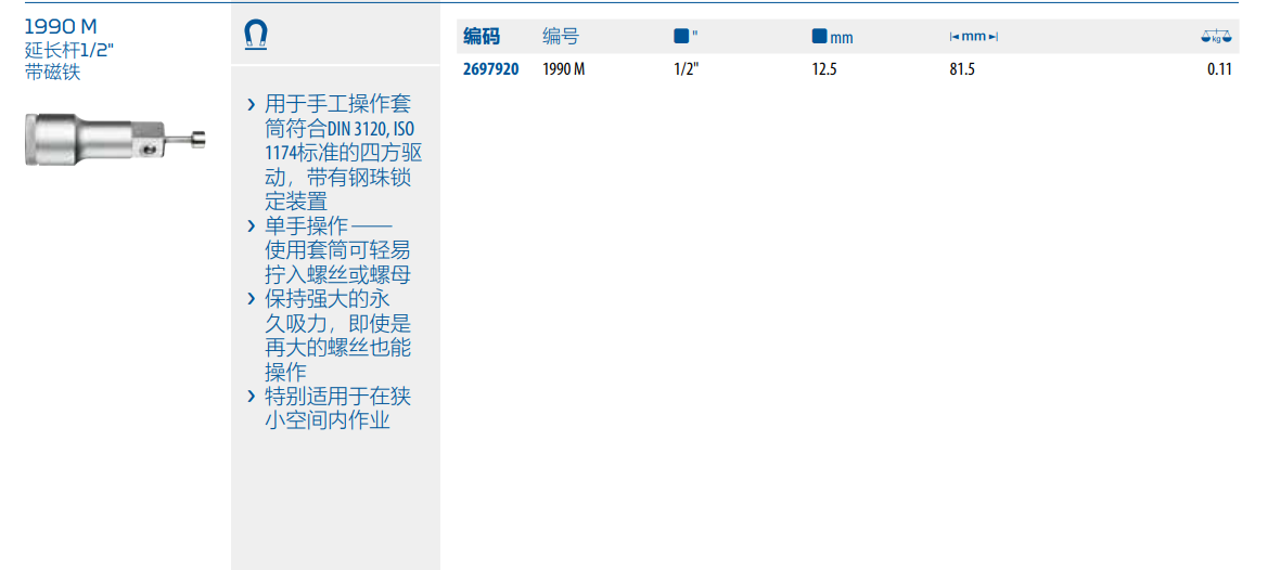 › 用于手工操作套筒符合DIN 3120, ISO1174标准的四方驱动,带有钢珠锁定装置