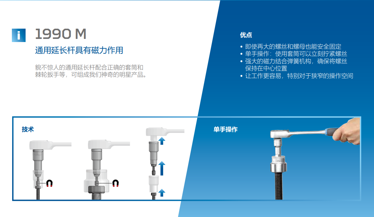 › 单手操作—使用套筒可轻易拧入螺丝或螺母