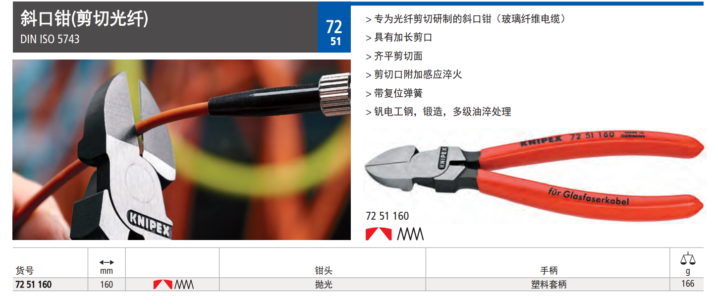 > 专为光纤剪切研制的斜口钳(玻璃纤维电缆)