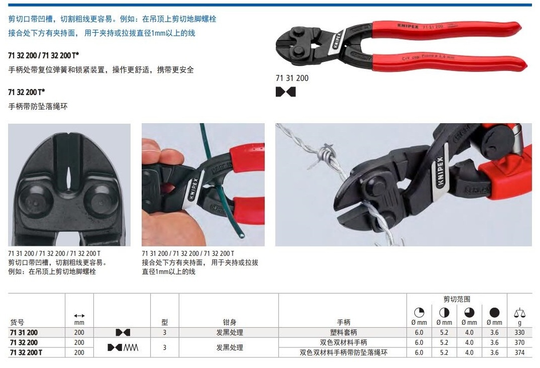 卓越的切削性能。剪切口带凹槽,切割粗线更容易。