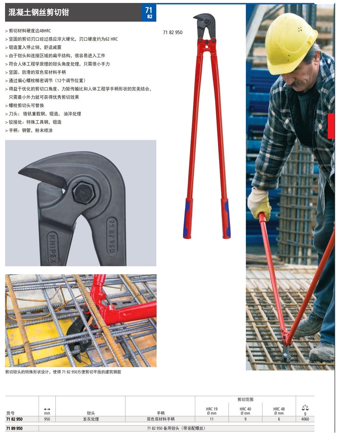 Knipex 钢丝剪切钳 剪切材料硬度达48HRC