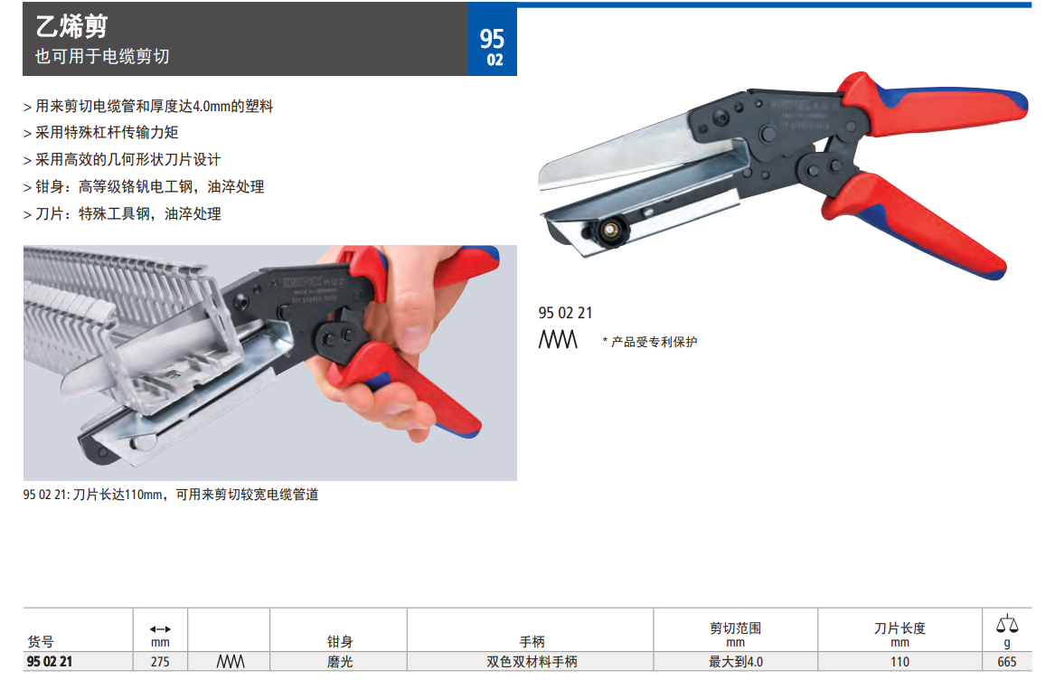> 用来剪切电缆管和厚度达4.0mm的塑料