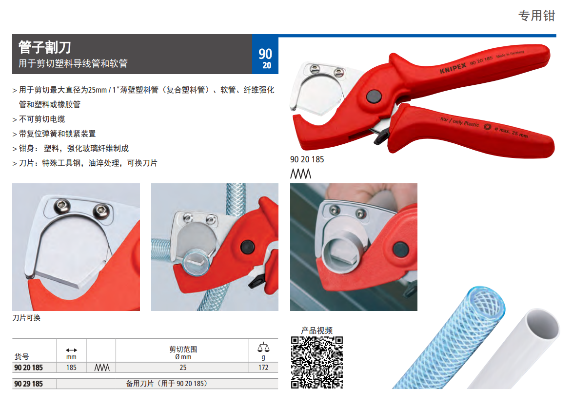 > 用于剪切最大直径为25mm / 1”薄壁塑料管(复合塑料管)、软管、纤维强化