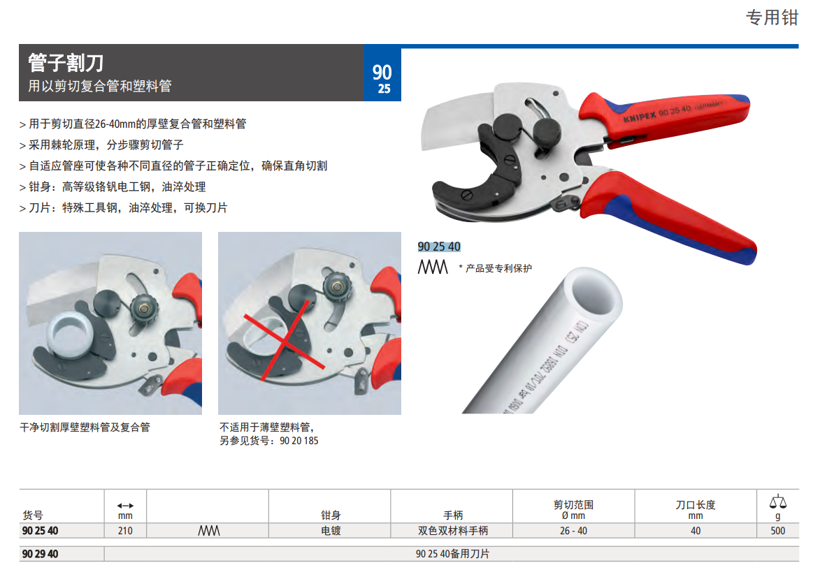 > 用于剪切直径26-40mm的厚壁复合管和塑料管