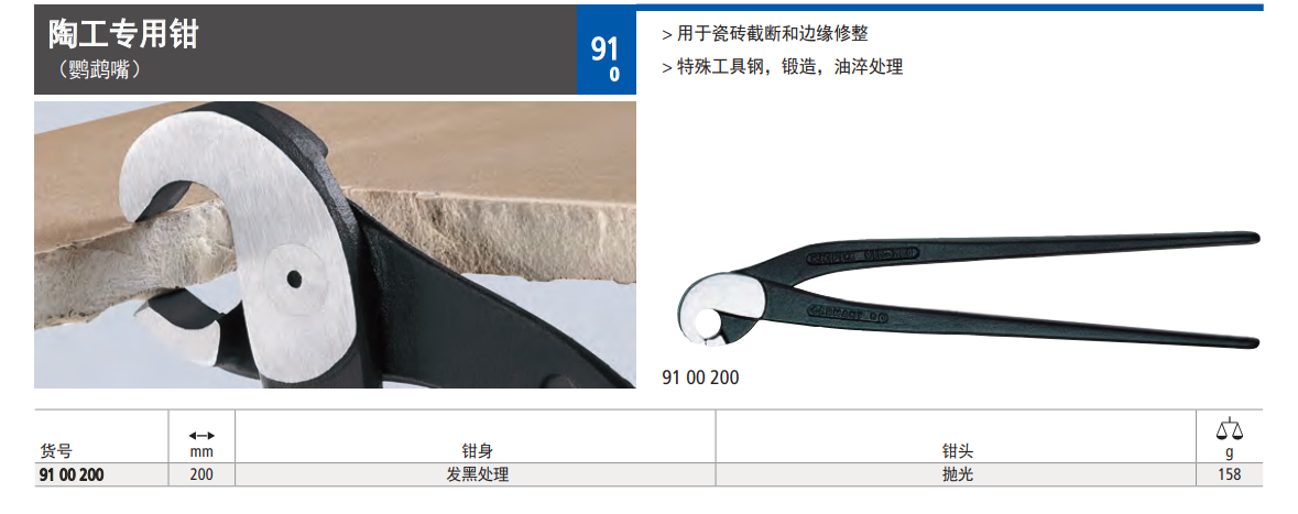 Knipex 陶工专用钳 (鹦鹉嘴)