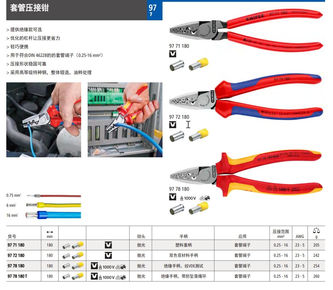 > 用于符合DIN 46228的的套管端子(0.25-16 mm²)