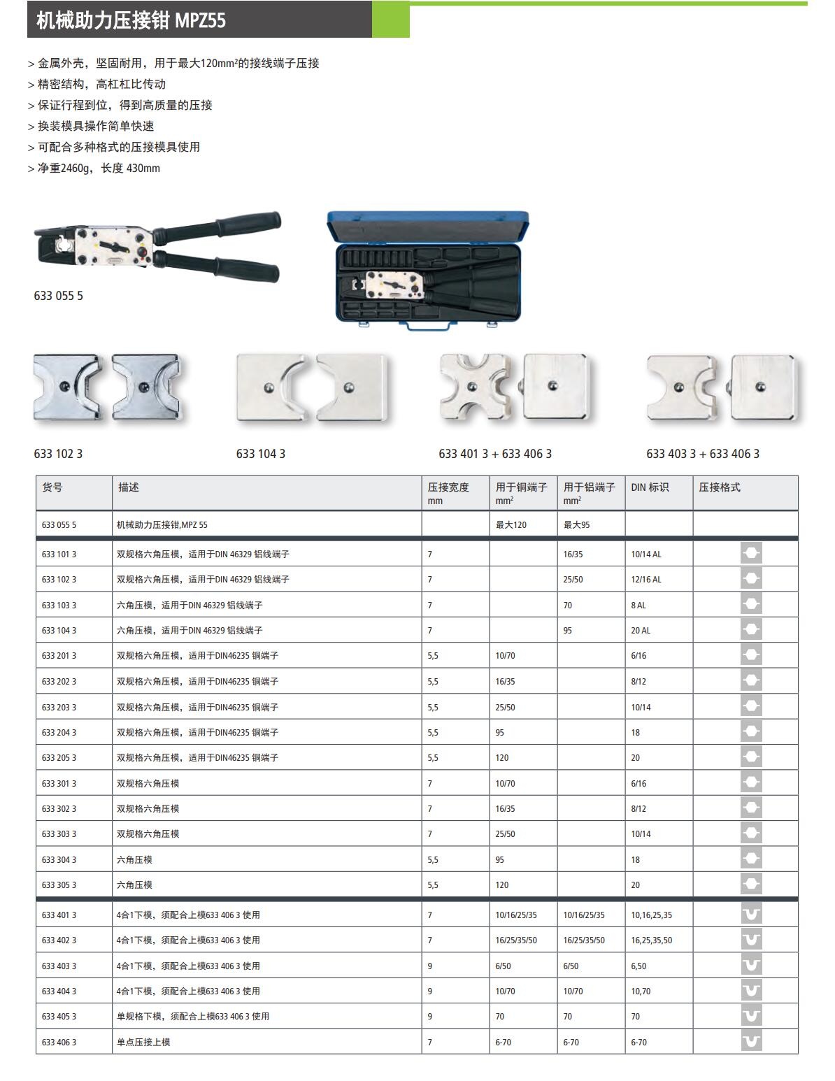 > 可配合多种格式的压接模具使用